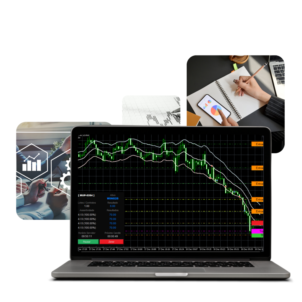 O Robô ST Mini Índice utiliza algoritmos de análise técnica avançada e modelos preditivos para identificar pontos de entrada e saída no mercado. Ele opera em tempo real, fazendo execução automatizada de ordens com alta precisão e gestão de risco otimizada, com configurações automáticas de stop loss e take profit.